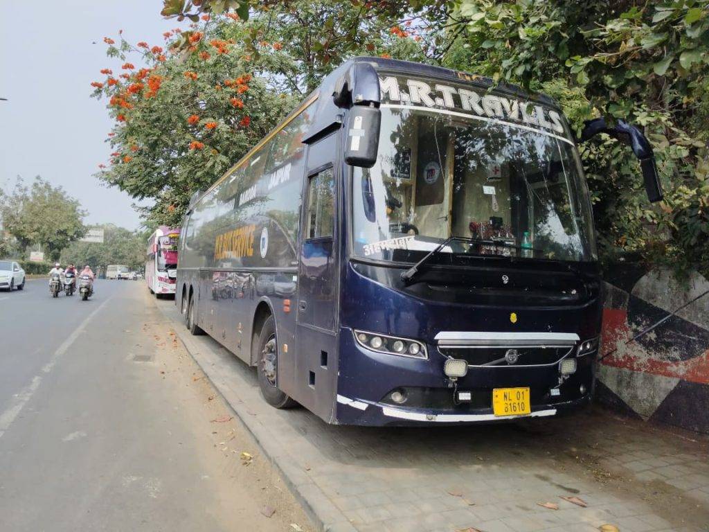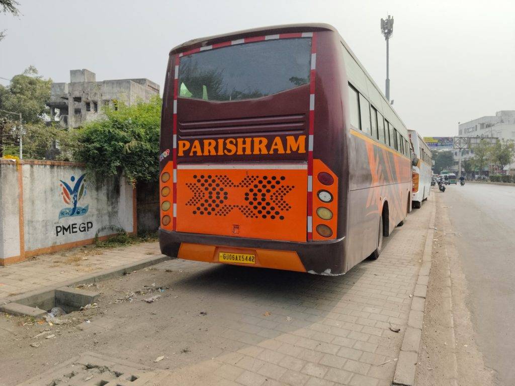 પીએનટી કોલોની પાસે ફૂટપાથ પર ખાનગી બસોનું સામ્રાજ્ય, ગરીબની લારી હટાવતું પાલિકાનું તંત્ર ‘લકઝરી માફિયા’ સામે લાચાર