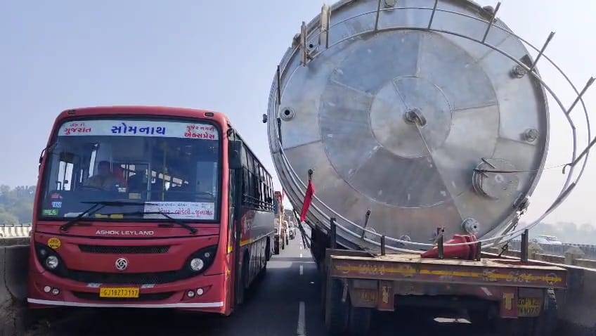 વડોદરા શહેર અને હાઇવે પર દિવસેને દિવસે અકસ્માતોના બનાવવામાં નોંધપાત્ર વધારો જોવા મળી રહ્યો છે, તેમ છતાં પણ કેટલાય વાહન ચાલકો ટ્રાફિક નિયમનનું પાલન કરતા નથી અને તેના કારણે છાસવારે અકસ્માતોની ઘટના બનતી હોય છે. ત્યારે, આજે બપોરે વાસદ નેશનલ હાઇવે નંબર આઠ ઉપર એક ખાનગી કંપનીની એસએસની મોટી ટેન્ક લઈ ટ્રેલર પસાર થઈ રહ્યું હતું. જો કે તેણે વાસદથી મહી નદીના બ્રિજ ઉપર રોંગ સાઈડ ઉપર પ્રવેશતા સામેથી આવતા વાહનો મુશ્કેલીમાં મુકાયા હતા. મહાકાય એસએસની મોટી ટેન્ક સાથે આ ટ્રેલર મીની બ્રિજ ઉપરથી રોંગ સાઈડ પર પસાર થતા પોલીસ ઊંઘતી ઝડપાઈ હતી. જોકે એક જાગૃત નાગરિક દ્વારા પોલીસ કંટ્રોલરૂમને જાણ કરી પોલીસને બોલાવી લેવામાં આવી હતી. જેથી પોલીસ સ્થળ પર દોડી આવી હતી અને ટ્રેલર ચાલકની અટકાયત કરી વધુ કાર્યવાહી માટે પોલીસ મથકે લઈ જવામાં આવ્યો હતો.