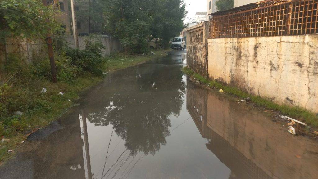 સંગમ રોડ સોનીની વાડી પાસે સોસાયટીમાં પાણી ફરી વળતા નદી વહેતી થઈ :