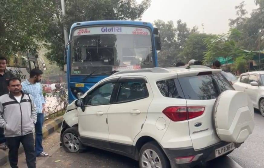 વડોદરા શહેર અને હાઇવે ઉપર દિવસેને દિવસે અકસ્માતોના બનાવવામાં નોંધપાત્ર વધારો જોવા મળી રહ્યો છે. વીતેલા બે દિવસમાં સર્જાયેલા જુદાજુદા અકસ્માતોના બનાવોમાં ત્રણ જેટલા વ્યક્તિઓના મોત થયા છે. ત્યારે હજી પણ અકસ્માતનો સિલસીલો અટકવાનું નામ નથી લઈ રહ્યો, તેવામાં આજે વધુ એક અકસ્માતની ઘટના બની હતી. શહેરના માંજલપુર વિસ્તાર ખાતેથી સિનિયર સિટીઝન જશુભાઈ પટેલ પોતાની કાર લઇ વડતાલ જવા માટે નીકળ્યા હતા. આ દરમિયાન કાલાઘોડાથી સિગ્નલ ક્રોસ કરી ફતેગંજ તરફ જતા માર્ગે ફાઈન આર્ટ્સ ફેકલ્ટી બહાર સુરત રાધનપુરની બસે તેમની કારને જોરદાર ટક્કર મારી હતી. જેથી કાર રોડ વચ્ચે આવેલા ડિવાઇડર સાથે ભટકાઈ હતી. જોકે, અકસ્માતમાં સિનિયર સિટીઝન જશુભાઈનો આબાદ બચાવ થયો હતો. જ્યારે કારમાં નુકસાન થયું હતું. બનાવની જાણ કરવામાં આવતા સયાજીગંજ પોલીસ ઘટના સ્થળે પહોંચી હતી અને આગળની કાર્યવાહી હાથ ધરી હતી.