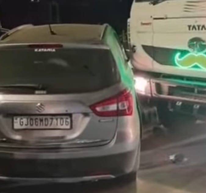 વડોદરા: શહેરના સેવાસી ચેકપોસ્ટથી પ્રિયા સિનેમા તરફ જવાના મુખ્ય માર્ગ પર ગત રાત્રે એક ડમ્પર અને કાર વચ્ચે જોરદાર અકસ્માત સર્જાયો હતો. આ અકસ્માતને પગલે રોડ પર મોટી સંખ્યામાં લોકોના ટોળા એકઠા થઈ ગયા હતા અને વાહનવ્યવહાર ખોરવાયો હતો.