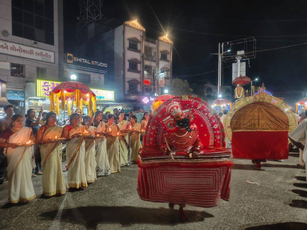 શોભાયાત્રામાં કેરલા સમાજની યુવતીઓ અને મહિલાઓ હાથમાં દીવા લઈને કતારબંધ રીતે જોડાતાં નગરમાં વિશેષ આકર્ષણનું કેન્દ્ર બન્યું હતું. આ સાથે કેરલા થી આવેલ વિશેષ ભજન મંડળીએ સુરતાલ સાથે ભક્તિભર્યા ભજનો રજૂ કરતાં સમગ્ર માહોલ મંત્રમુગ્ધ બની ગયો હતો.