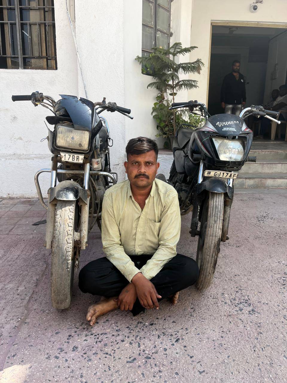 પકડાયેલા આરોપીની ઓળખ વિશાલકુમાર લક્ષ્મણભાઈ બારીયા તરીકે થઈ છે. પૂછપરછ દરમિયાન તેણે 17 માર્ચે સફારી કંપની ગેટ પાસે ચાની લારી પાસેથી એક મોટરસાઇકલ ચોરી કર્યાની કબૂલાત આપી હતી. ઉપરાંત 13 માર્ચે સુયોગ ઇલેક્ટ્રિકલ કંપનીના પાર્કિંગમાંથી બીજી મોટરસાઇકલ ચોરી કર્યાની વાત પણ સ્વીકારી હતી.