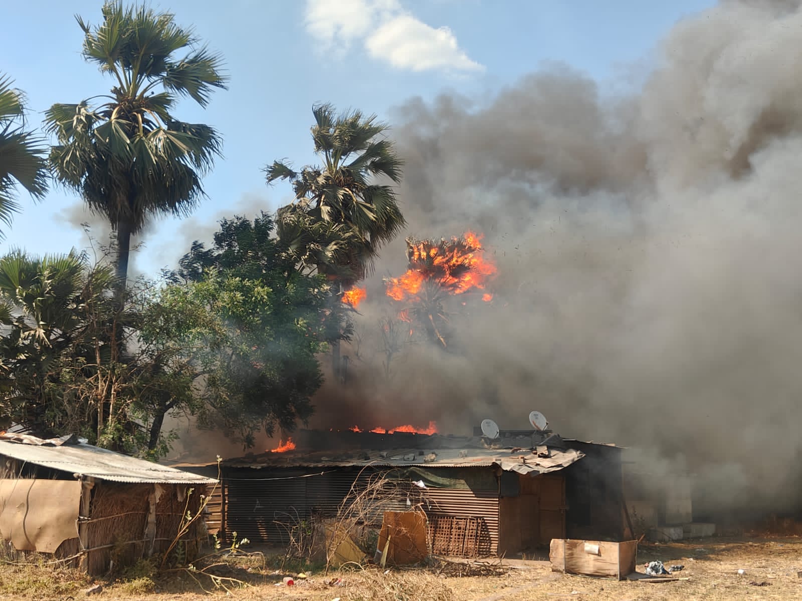 એકથી વધુ ગોડાઉન સાથે ત્રણ કાચા મકાનો બળી ખાક, ફાયર ટીમોની ભારે જહેમત