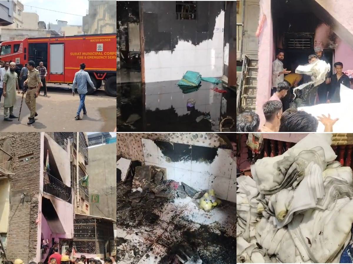 સુરતના Limbayat વિસ્તારમાં મીઠી ખાડી નજીક આવેલા રહેણાંક મકાનમાં લાગેલી ભીષણ આગે જાનલેણ રૂપ ધારણ કર્યું છે. આ દુર્ઘટનામાં ચાર મહિલાઓ અને એક બાળક સહિત કુલ 5 લોકોના કરુણ મોત થયા છે, જેના કારણે સમગ્ર વિસ્તારમાં શોક અને ભયનો માહોલ ફેલાયો છે. પ્રાથમિક માહિતી મુજબ, મકાનમાં મોટા પ્રમાણમાં સાડી પેકિંગ મટિરિયલ, ફોમ શીટ અને જ્વલનશીલ સામાન સંગ્રહિત કરવામાં આવ્યો હતો. સ્થાનિક લોકોના જણાવ્યા અનુસાર, ઘરમાં એટલો વધુ માલસામાન ભરેલો હતો કે ચાલવા માટે પણ પૂરતી જગ્યા નહોતી. અંદાજે 20 ટન સુધીનો સાડીનો જથ્થો ત્યાં રાખવામાં આવ્યો હતો, જેના કારણે આગ ઝડપથી ફેલાઈ ગઈ અને નિયંત્રણ બહાર થઈ ગઈ હતી.