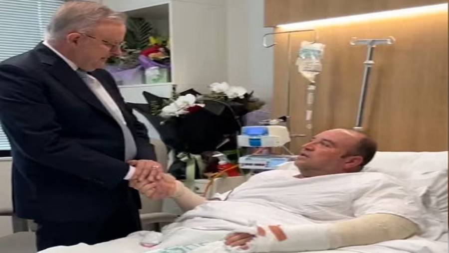 વડા પ્રધાન એન્થોની અલ્બેનીઝે હોસ્પિટલમાં અહેમદ અલ-અહમદની મુલાકાત લીધી, જેમણે એક આતંકવાદી પાસેથી રાઇફલ છીનવી લેવા અને ઘણા લોકોના જીવ બચાવવા માટે પોતાનો જીવ જોખમમાં મૂક્યો હતો.