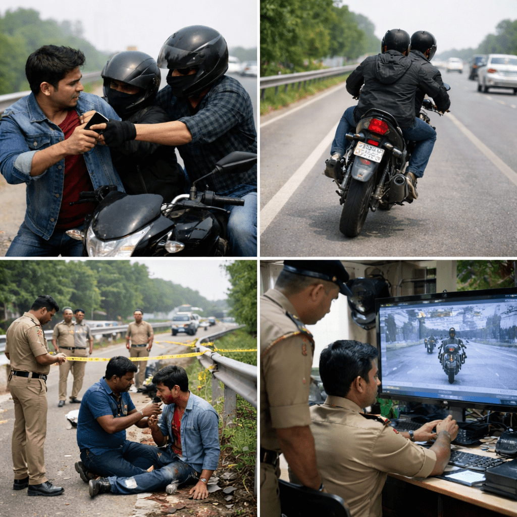 સુરત: માંગરોળના પીપોદરા ગામની સીમાએ એક રાહદારી જે પીપોદરા પાસે નેશનલ હાઇવે 48 પરથી જઈ રહ્યો હતો ત્યારે એક બાઇક પર બે અજાણ્યા લૂંટારુઓએ યુવકને આંતરી તેની પાસેથી મોબાઈલ તફડાવવા ઝપાઝપી કરી હતી અને યુવકના ગળે બ્લેડ જેવું તીક્ષ્ણ ધારદાર વસ્તુથી તેના ગળા પર હુમલો કરતા યુવક લોહીલુહાણ થઈ ફસડાઈ પડ્યો હતો. તેના હાથમાંથી કિંમતી મોબાઈલ આંચકી એ લૂંટારાઓ ત્યાંથી પૂરપાટ ઝડપે ફરાર થઈ ગયા હતા. યુવકના ગળાના ભાગે ગંભીર ઈજા થતા તેને તાત્કાલિક સારવાર માટે નજીકની હોસ્પિટલમાં ખસેડવામાં આવ્યો હતો. મળતી માહિતી અનુસાર યુવકની હાલત હાલ નાજુક હોવાનું જાણવા મળી રહ્યું છે. ઘટનાની જાણ થતા જ સ્થાનિક પોલીસ ઘટનાસ્થળે અને હોસ્પિટલે કાફલા સાથે પહોંચી હતી. આગળ તપાસ ચાલુ છે. ઘટનાને પગલે વિસ્તારમાં ભયનો માહોલ ફેલાયો છે. પોલીસ દ્વારા આસપાસના સીસીટીવી કેમેરાની તપાસ હાથ ધરવામાં આવી છે. લૂંટારાઓની ઓળખ માટે કાર્યવાહી તેજ કરવામાં આવી છે. સ્થાનિક લોકોએ રાત્રિના સમયે પેટ્રોલિંગ વધારવાની માંગ કરી છે. પોલીસે આરોપીઓને ઝડપી પાડવા માટે ખાસ ટીમ બનાવી આગળની તપાસ કરાશે એમ પણ જણાવ્યું હતું.