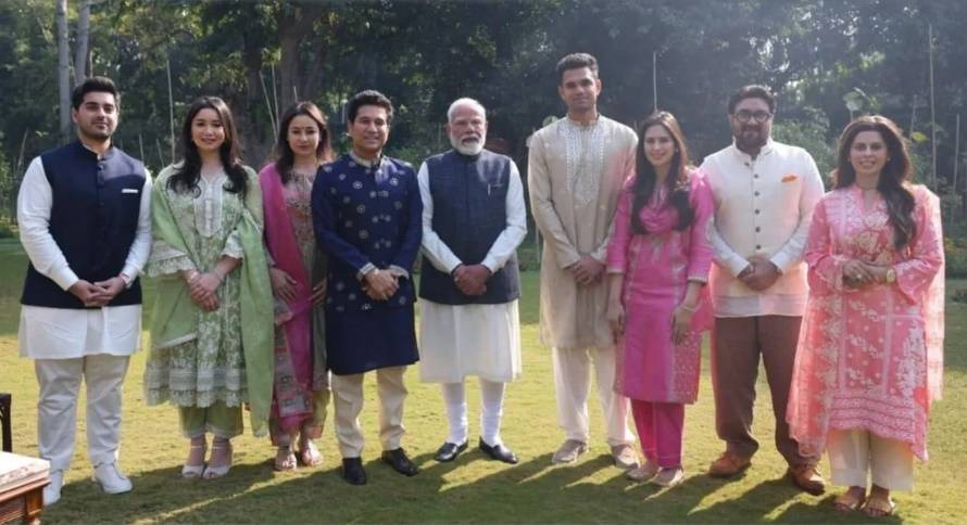 ભારતના મહાન ક્રિકેટર સચિન તેંડુલકરે તેમના પુત્ર અર્જુન તેંડુલકરના લગ્નની જાહેરાત કરી છે. અર્જુનની થનાર પત્નીનું નામ સાનિયા છે. મંગળવારે સચિન તેંડુલકર અને તેનો પરિવાર ભારતના વડા પ્રધાન નરેન્દ્ર મોદીને તેમના નિવાસસ્થાને મળ્યો. સચિને પીએમ મોદીને અર્જુન અને સાનિયાના લગ્નમાં હાજરી આપવા આમંત્રણ આપ્યું. સચિનના આખા પરિવારે પીએમ મોદી સાથે ફોટો પણ પડાવ્યો. ચાલો જાણીએ કે આ મુલાકાત વિશે સચિન તેંડુલકરનું શું કહેવું છે.