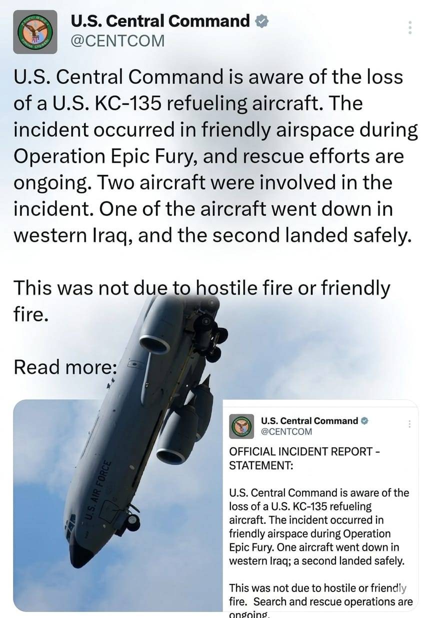 અમેરિકી સૈન્ય અનુસાર આ ઘટના “ઓપરેશન એપિક ફ્યુરી” દરમિયાન બની હતી. આ ઓપરેશન ઇરાન સામે ચાલી રહેલી સૈન્ય કાર્યવાહી સાથે જોડાયેલ છે. ઘટનાની માહિતી આપતા US Central Commandએ જણાવ્યું કે ઘટનામાં બે વિમાનો સામેલ હતા. જેમાંથી એક સુરક્ષિત રીતે લેન્ડ થયું જ્યારે બીજું વિમાન ઇરાકના પશ્ચિમ વિસ્તારમાં પડી ગયું