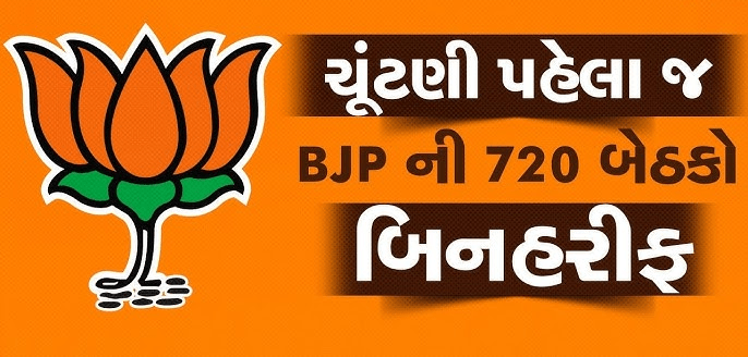 ગાંધીનગર: ગુજરાતમાં સ્થાનિક સ્વરાજ્યની ચૂંટણીના મતદાન પહેલાં જ ભારતીય જનતા પાર્ટીએ મજબૂત સપાટો બોલાવ્યો છે. ઉમેદવારી ફોર્મ પરત ખેંચવાના અંતિમ દિવસે રાજ્યમાં બિનહરીફ ઉમેદવારોનો એક નવો જ ઈતિહાસ રચાયો છે. કુલ 1816 ઉમેદવારોએ પોતાના ફોર્મ પાછા ખેંચતા ભાજપના 720 ઉમેદવાર બિનહરીફ જાહેર થયા છે. રાજ્યમાં કુલ 9237 બેઠક માટે આગામી 26મી તારીખે મતદાન યોજાવાનું છે. હાલની સ્થિતિએ 8817 બેઠક પર 26,140 ઉમેદવારો વચ્ચે ખરાખરીનો જંગ જામશે. જોકે, ચૂંટણી પહેલા જ 720 બેઠક પર જીત મેળવીને ભાજપે વિપક્ષો પર માનસિક સરસાઈ મેળવી લીધી છે.