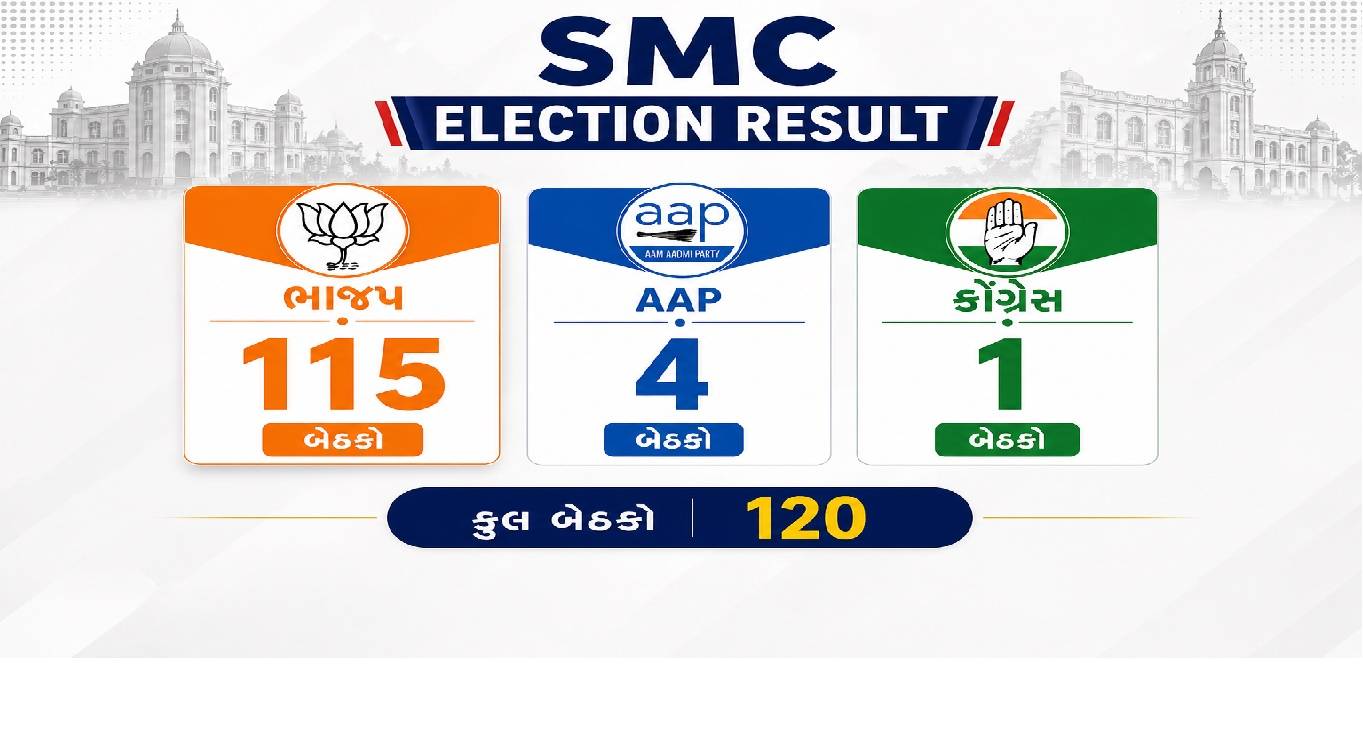સુરત: સુરત મહાનગરપાલિકાની ચૂંટણીમાં ભારતીય જનતા પાર્ટીએ ફરી એકવાર પોતાનો દબદબો સાબિત કરવાની સાથે ઐતિહાસિક વિજય નોંધાવ્યો છે. મનપાની કુલ 120 બેઠકમાંથી ભાજપે 1995ની ચૂંટણી પછી સૌથી વધુ 115 બેઠક કબજે કરી છે. જ્યારે આપનો સુરતમાં સફાયો થઈ ગયો છે. જે આપ પાર્ટીને ગત વખતે 27 બેઠકો મળી હતી. તે પાર્ટી આ વખતે માત્ર 4 જ બેઠકો પર સિમિત થઈ ગઈ છે. જ્યારે કોંગ્રેસનું પાંચ વર્ષ બાદ ફરી મનપામાં આગમન થયું છે. કોંગ્રેસને એક બેઠક મળી છે.