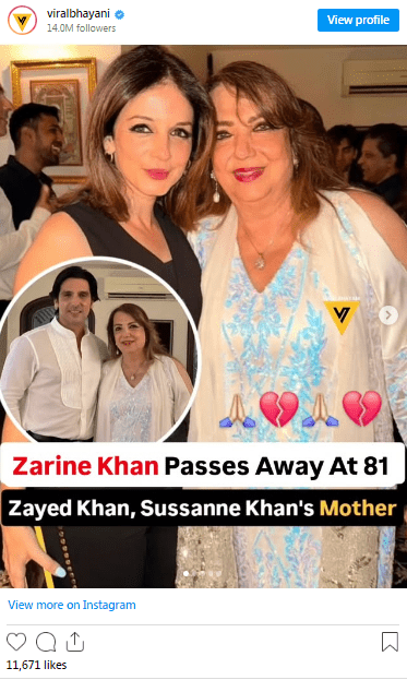 બોલીવુડ અભિનેતા ઝાયેદ ખાનની માતા અને પ્રખ્યાત અભિનેત્રી-મોડેલ ઝરીન કતરકનું 81 વર્ષની ઉંમરે અવસાન થયું છે. તેઓ લાંબા સમયથી બીમાર હતા. ઝરીન કતરકે તા.7 નવેમ્બર 2025ના રોજ મુંબઈ સ્થિત પોતાના નિવાસસ્થાને અંતિમ શ્વાસ લીધા. તેમના નિધનથી ફિલ્મ ઉદ્યોગ અને ચાહકોમાં શોકની લાગણી ફેલાઈ છે.
