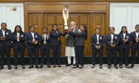 વર્લ્ડ ચેમ્પિયન ભારતીય મહિલા બ્લાઇન્ડ ક્રિકેટ ટીમ વડાપ્રધાન નરેન્દ્ર મોદીને મળી. ટીમ ટ્રોફી સાથે નવી દિલ્હીમાં પીએમ નિવાસસ્થાને પહોંચી. બધી ખેલાડીઓએ સાથે...