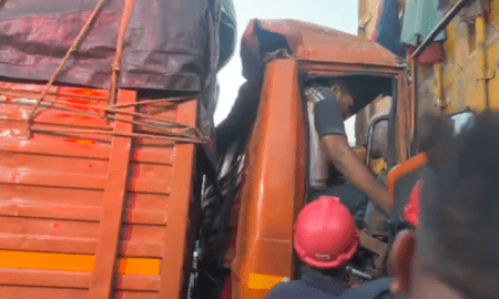 આઇશર ટેમ્પો ટ્રક પાછળ ઘૂસતા ડ્રાઈવર કેબિનમાં ફસાયો, એક કલાકની જહેમત બાદ બહાર કાઢાયોહાઇડ્રોલિક સાધનોની મદદથી બચાવ કામગીરી સફળ, 108 મારફતે હોસ્પિટલ...