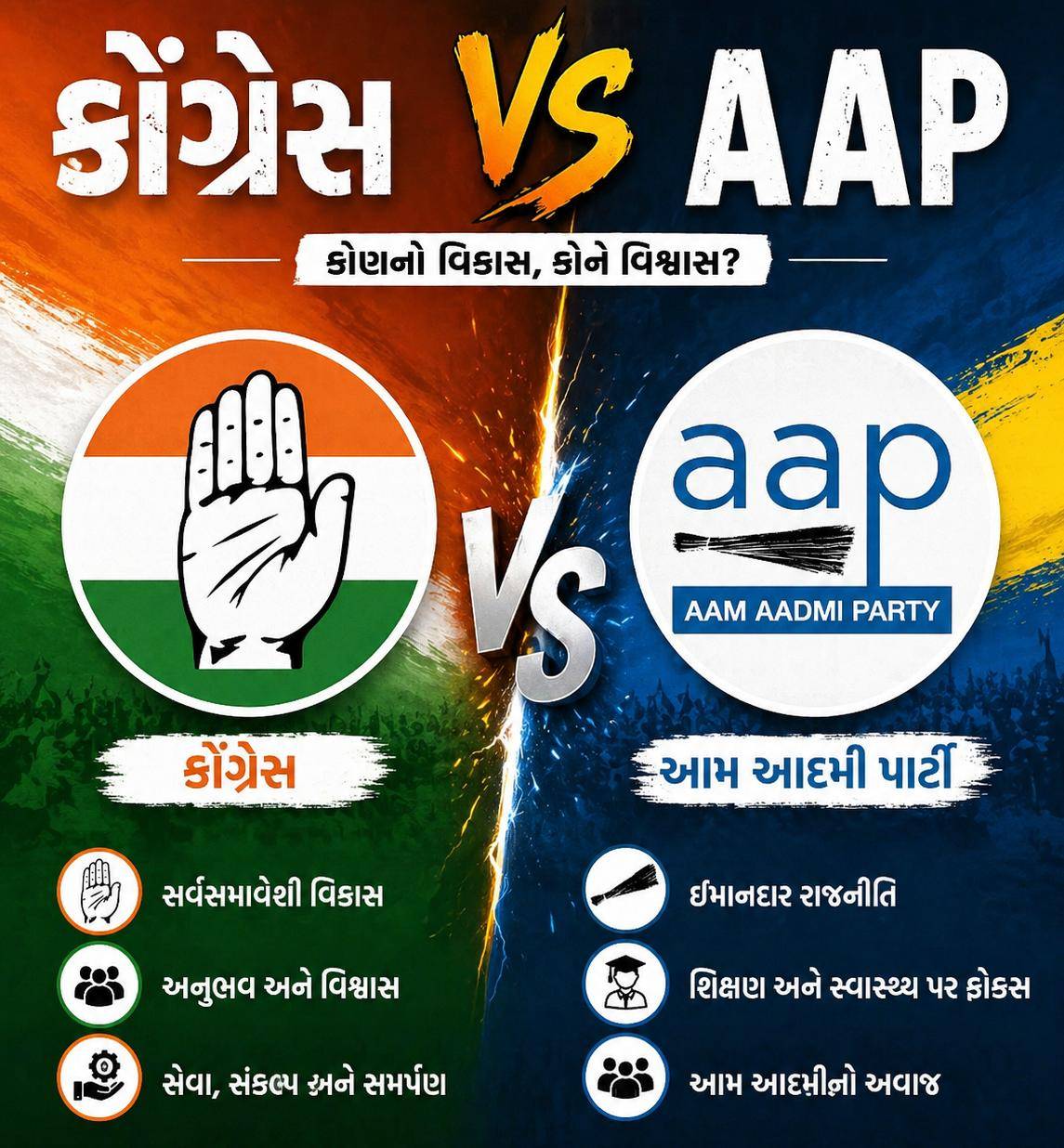 30 વોર્ડમાં કોંગ્રેસ–AAP વચ્ચે સીધી ટક્કર