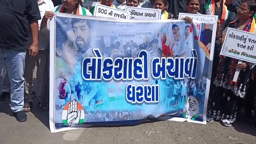 સુરત શહેરમાં ચૂંટણી માહોલ વચ્ચે હવે પોલીસની કામગીરીને લઈને રાજકીય તણાવ વધી રહ્યો છે. શહેર કોંગ્રેસે પોલીસ પર ગંભીર આક્ષેપો લગાવતા ખુલ્લો વિરોધ નોંધાવ્યો છે. આજરોજ શહેર કોંગ્રેસ સમિતિના આગેવાનો અને કાર્યકરો મોટી સંખ્યામાં એકત્ર થયા હતા અને હાથમાં પ્લેકાર્ડ સાથે પ્રદર્શન કરી પોલીસ વિરુદ્ધ નારાજગી વ્યક્ત કરી હતી.