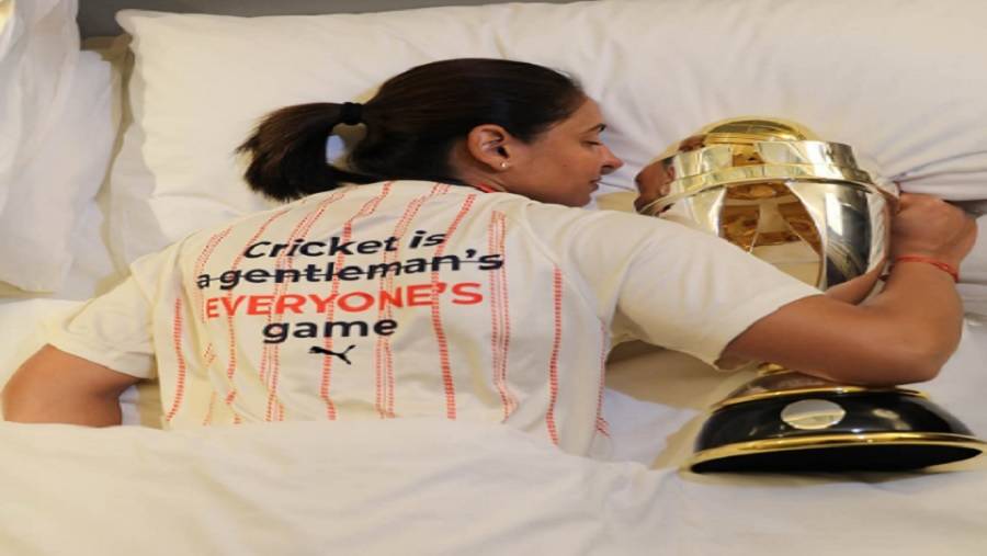ભારતીય મહિલા ક્રિકેટ ટીમની કેપ્ટન હરમનપ્રીત કૌરે પણ ઇન્સ્ટાગ્રામ પર એક ફોટો શેર કર્યો છે. તેમાં તે વર્લ્ડ કપ ટ્રોફી સાથે સૂતી જોવા મળી રહી છે. જોકે, તેણીએ પહેરેલી જર્સી એક શક્તિશાળી સંદેશ વહન કરે છે: “ક્રિકેટ દરેકની રમત છે…” “ક્રિકેટ” પછી “જેન્ટલમેન” શબ્દો ક્રોસ કરેલા દેખાય છે.