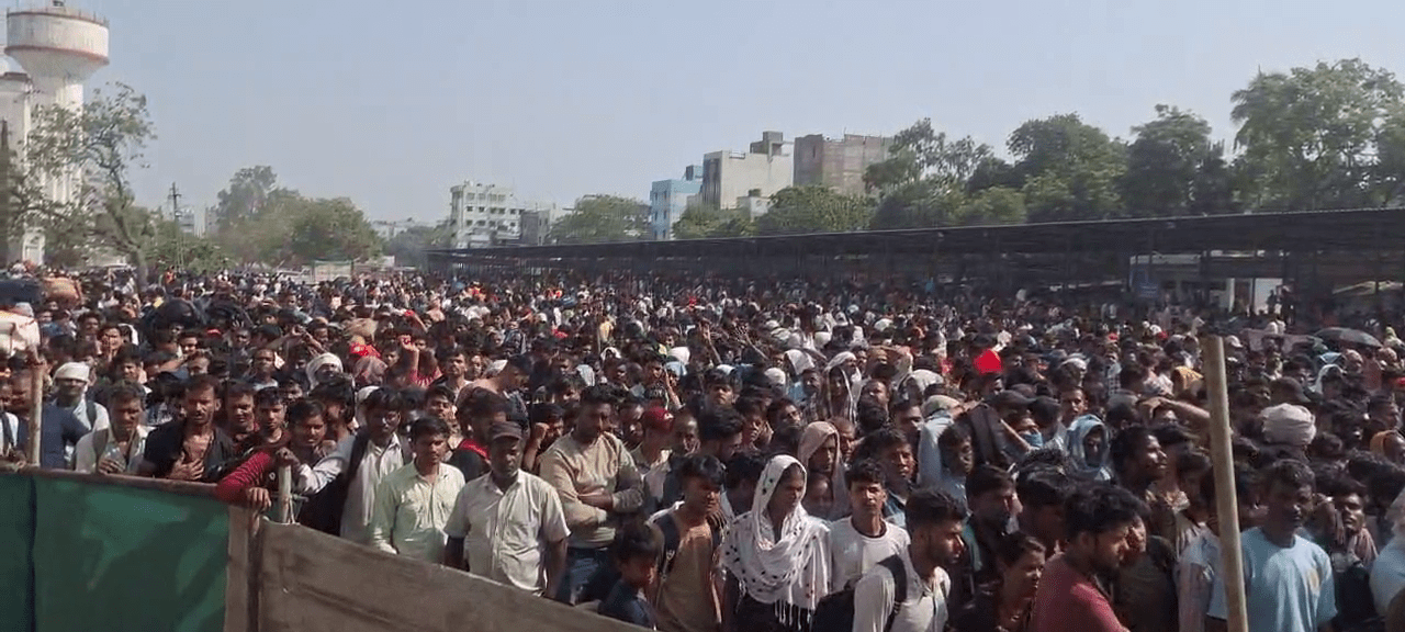 8000 મુસાફરો સામે માત્ર 2 ટ્રેન, પોલીસે હળવો લાઠીચાર્જ કર્યો; મહિલાઓ બેરિકેડ કૂદી, 2 મુસાફરો બેભાન