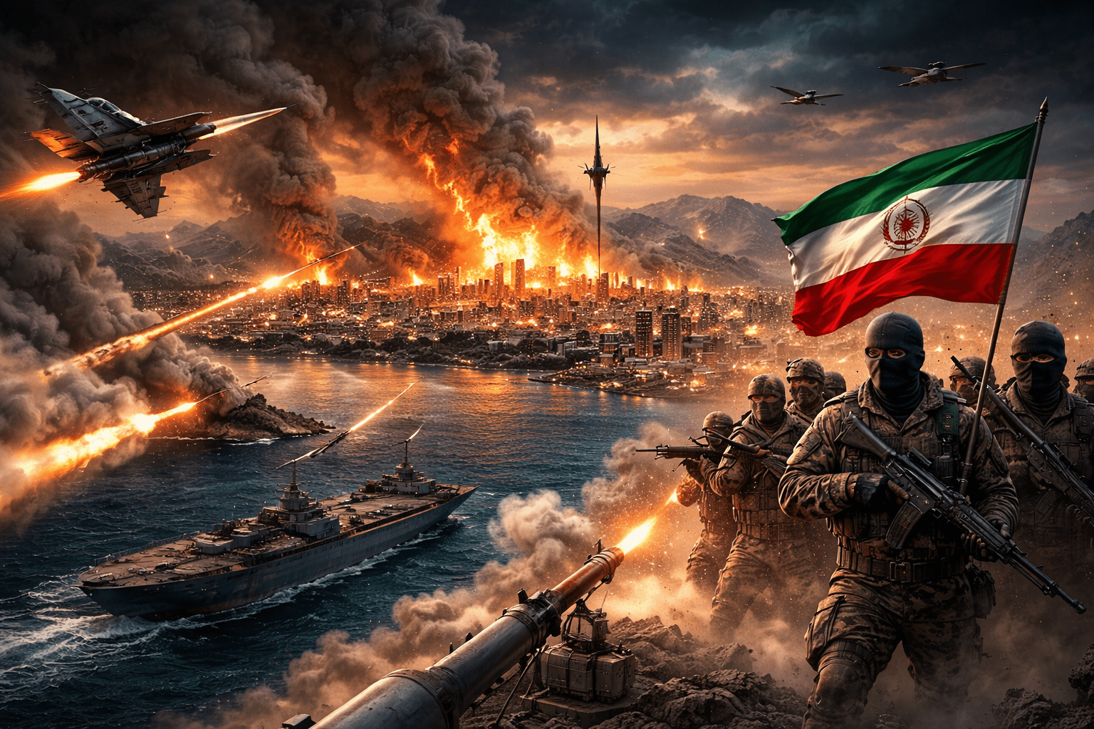 ઈરાનની ઇસ્લામિક રિવોલ્યુશનરી ગાર્ડ્સ કોર્પ્સ (IRGC)એ પણ જણાવ્યું છે કે તેણે તેના બદલો લેવાના અભિયાન “ઓપરેશન ટ્રુ પ્રોમિસ 4” હેઠળ નવા મિસાઈલ હુમલાઓ શરૂ કર્યા છે. આ અભિયાનનો 37મો તબક્કો મોડી રાત્રે હાથ ધરાયો હતો, જેમાં ભારે અને બહુસ્તરીય મિસાઈલ હુમલાઓ કરવામાં આવ્યા હતા. IRGCના દાવા મુજબ એર્બિલ, બહેરીનમાં અમેરિકી પાંચમા નૌકાદળનું બેઝ અને તેલ અવીવ તથા બેર યા’કોઓવના સૈન્ય કેન્દ્રોને નિશાન બનાવવામાં આવ્યા હતા. અમેરિકન સૈન્યએ દાવો કર્યો છે કે તેણે હોર્મુઝ સ્ટ્રેટ નજીક ઈરાનના 16 ખાણ મૂકતા જહાજોનો નાશ કર્યો છે. અમેરિકી રાષ્ટ્રપતિ ડોનાલ્ડ ટ્રમ્પે ઈરાનને ચેતવણી આપતાં કહ્યું છે કે જો હોર્મુઝ સ્ટ્રેટમાં કોઈ ખાણ મૂકવામાં આવશે તો તે જહાજોને તાત્કાલિક નષ્ટ કરવામાં આવશે.