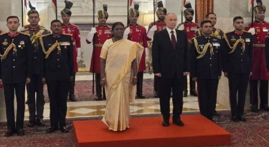 રશિયાના રાષ્ટ્રપતિ વ્લાદિમીર પુતિન બે દિવસની મુલાકાત માટે ભારત આવ્યા છે. આજે (શુક્રવાર, 5 ડિસેમ્બર) પુતિનની મુલાકાતનો બીજો દિવસ છે. પુતિને રાજઘાટ ખાતે મહાત્મા ગાંધીને શ્રદ્ધાંજલિ આપી. રાષ્ટ્રપતિ ભવનમાં તેમને 21 તોપોની સલામી આપવામાં આવી હતી. રાષ્ટ્રપતિ ભવનમાં પહોંચ્યા બાદ રશિયન રાષ્ટ્રપતિ વ્લાદિમીર પુતિનનું ઔપચારિક સ્વાગત કરવામાં આવ્યું હતું. તેમણે રાષ્ટ્રપતિ દ્રૌપદી મુર્મુ દ્વારા તેમના સન્માનમાં આયોજિત રાત્રિભોજનમાં હાજરી આપી હતી.