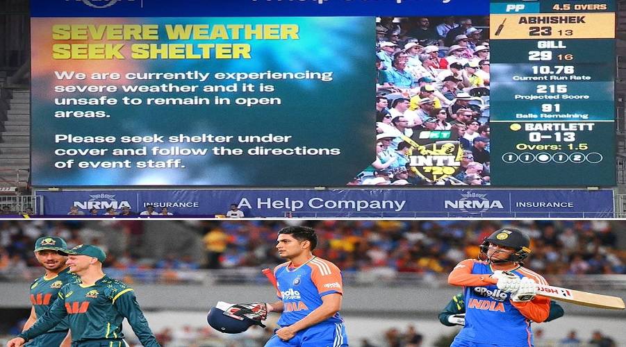 આજે પાંચમી અને સિરીઝની છેલ્લી ટી20 મેચમાં ટોસ હારીને પ્રથમ બેટિંગ કરવાનો નિર્ણય લીધા હતો. શુભમન ગિલ અને અભિષેક શર્માએ ભારતને શાનદાર શરૂઆત અપાવી હતી. . બંનેએ અડધી સદીની ભાગીદારી નોંધાવી. અભિષેકે ચાર ઓવરમાં બે જીવનદાન મળ્યા પરંતુ શુભમન શરૂઆતથી જ ટચમાં દેખાતો હતો. બંનેએ તોફાની બેટિંગ કરી હતી. જોકે, વરસાદે તેમના તોફાનને અટકાવ્યું હતું.