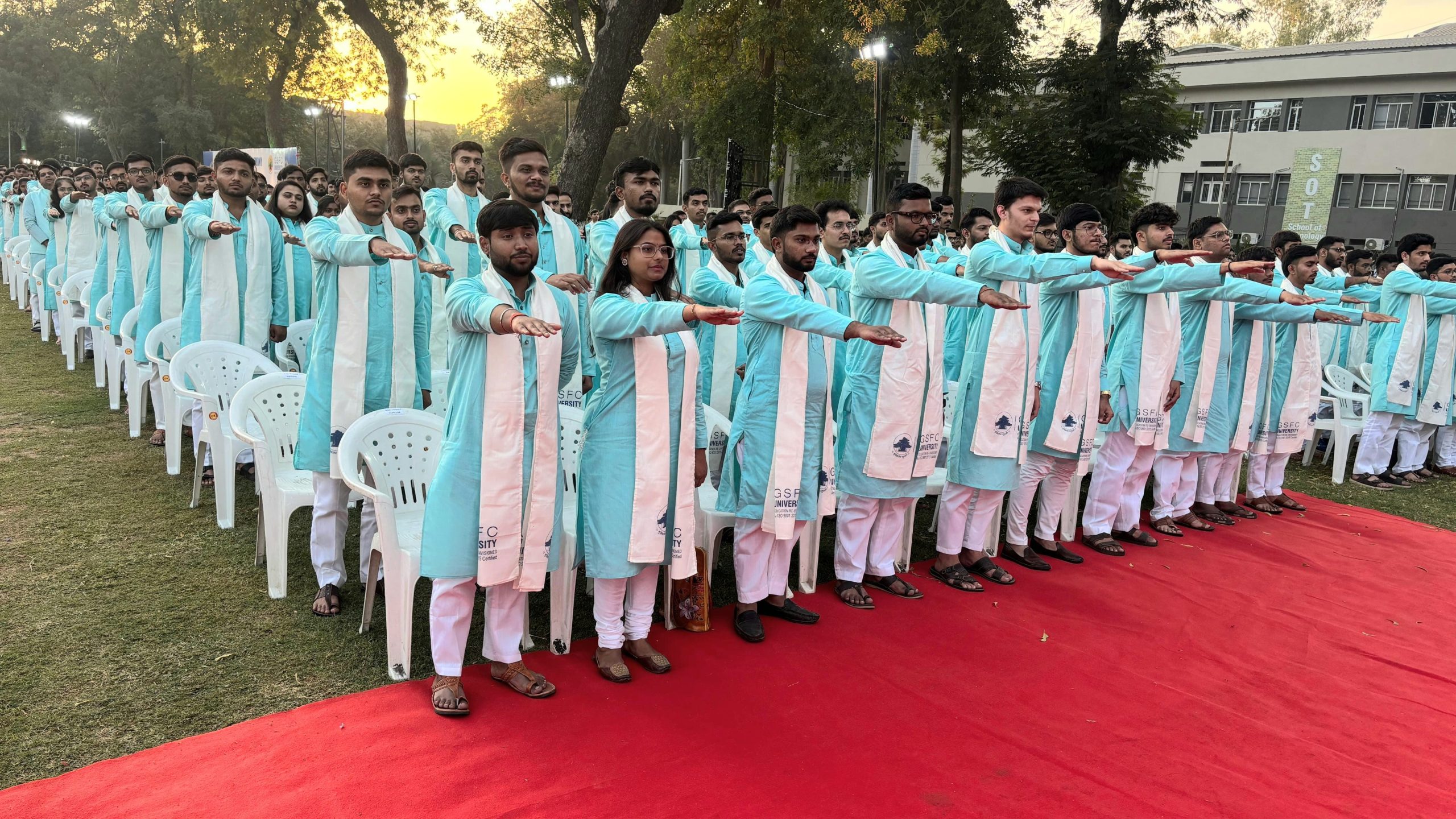 GSFC યુનિવર્સિટીના પ્રમુખ પી.કે. તનેજા (IAS નિવૃત્ત) દ્વારા વિદ્યાર્થીઓને પદવીઓ એનાયત કરવામાં આવી હતી. દીક્ષાંત પ્રવચનમાં ડો. ટેસી થોમસે વિદ્યાર્થીઓને સતત શીખતા રહેવા, નિર્ભયપણે મોટા સપના જોવા અને રાષ્ટ્ર નિર્માણમાં યોગદાન આપવા પ્રેરણા આપી હતી. તેમણે યુવતીઓને વિશેષ સંદેશ આપતા જણાવ્યું હતું કે આત્મવિશ્વાસ અને ધીરજથી દરેક પડકારને તકમાં બદલી શકાય છે.