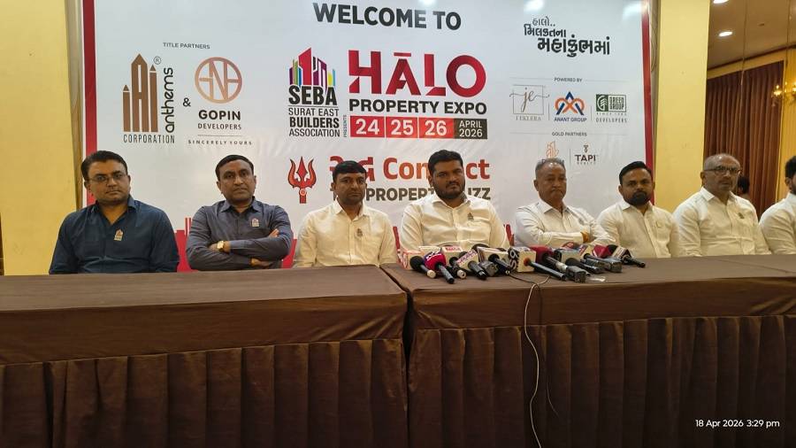 સુરત. સુરત શહેરમાં રિયલ એસ્ટેટ ક્ષેત્રનો સૌથી મોટો ‘HALO પ્રોપર્ટી એકસપો 2026’ નું આયોજન કરવામાં આવી રહ્યું છે. સુરત ઈસ્ટ બિલ્ડર્સ એસોસિએશન (SEBA) દ્વારા આયોજિત આ ત્રણ દિવસીય પ્રોપર્ટી એકસ્પો 24થી 26 એપ્રિલ દરમિયાન એન્થમ સર્કલ, વલથાણ-પુણાગામ કેનાલ રોડ, આઉટર રિંગ રોડ ખાતે યોજાશે.