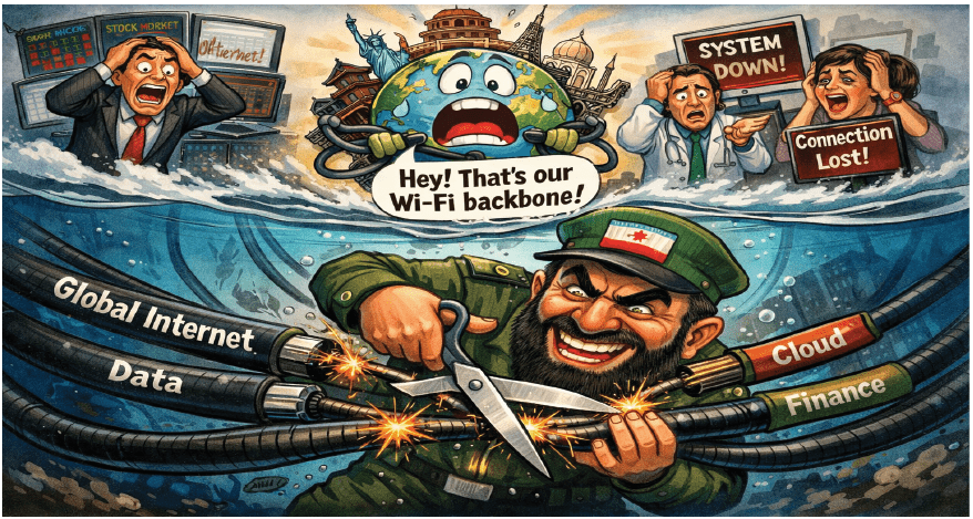 લાલ સમુદ્ર અને પર્સિયન ગલ્ફની નીચે સમુદ્રતળ પર બિછાવેલા સેંકડો ફાઇબર ઓપ્ટિક કેબલ વિશ્વના ૯૫ ટકાથી વધુ ઇન્ટરનેટ ટ્રાફિકનું વહન કરે છે. તમારા ઇમેઇલ્સ, વિડિઓ કૉલ્સ અને ક્લાઉડ સેવાઓથી લઈને નાણાંકીય વ્યવહારો અને લાઇવ સ્ટ્રીમિંગ સુધી બધું જ આ કેબલ પર આધાર રાખે છે. ઓછામાં ઓછા ૧૭ સબમરીન કેબલ ફક્ત લાલ સમુદ્રમાંથી પસાર થાય છે, જે યુરોપ, એશિયા અને આફ્રિકાને જોડતો એક મહત્ત્વપૂર્ણ ડેટા કોરિડોર બનાવે છે. આ કેબલ એમેઝોન, માઇક્રોસોફ્ટ અને ગુગલ જેવી કંપનીઓ દ્વારા ગલ્ફ ક્ષેત્રમાં બાંધવામાં આવેલાં વિશાળ ડેટા સેન્ટરોને વિશ્વભરના અબજો વપરાશકર્તાઓ સાથે જોડે છે.