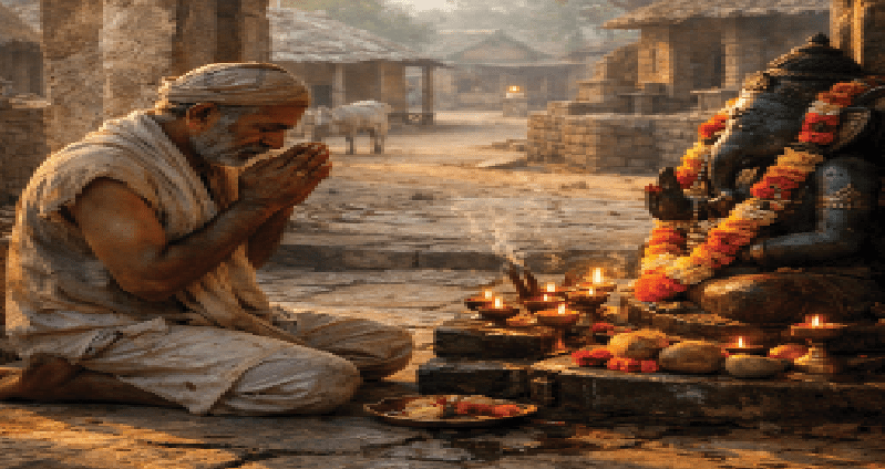 એક ગામમાં સાધારણ મજૂર તરીકે કામ કરતો, એકલો રહેતો રામનારાયણ, ભગવાનનો ભક્ત હતો. તે રોજ મંદિરે જતો અને ભગવાનને પ્રાર્થના કરતો કે, ‘હે પ્રભુ, કૃપા કરજો અને હું કોઈને કામ આવી શકું તેવી પ્રેરણા અને તક મને આપજો.’ તે રોજ આવી પ્રાર્થના કરતો અને પોતાનાથી બનતી મદદ બીજાને કરવા સતત તત્પર રહેતો. એક દિવસ તેના પડોશી શ્યામલાલના ઘરની છત ટપકવા લાગી. ઘરમાં નાનાં છોકરાં હતાં. જો બહુ વધુ વરસાદ આવે તો છત પડી પણ ભાંગે તેવી સ્થિતિ હતી.આસપાસનાં લોકો આવ્યાં પણ અમુક લોકોએ સલાહ આપી અને અમુક લોકોએ સહાનુભૂતિ દેખાડી પોતાપોતાના કામે ચાલ્યા ગયા કારણ કોઈ પાસે સમય ન હતો.