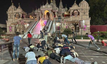 બી એ પી એસ વિદ્યામંદિરના વિદ્યાર્થીઓએ અદા કરી અનોખી ગુરુભક્તિ વડોદરા:રવિવારે રાત્રે અટલાદરા રોડ પર ભક્તિ અને શ્રદ્ધાનો અનોખો નઝારો જોવા મળ્યો...