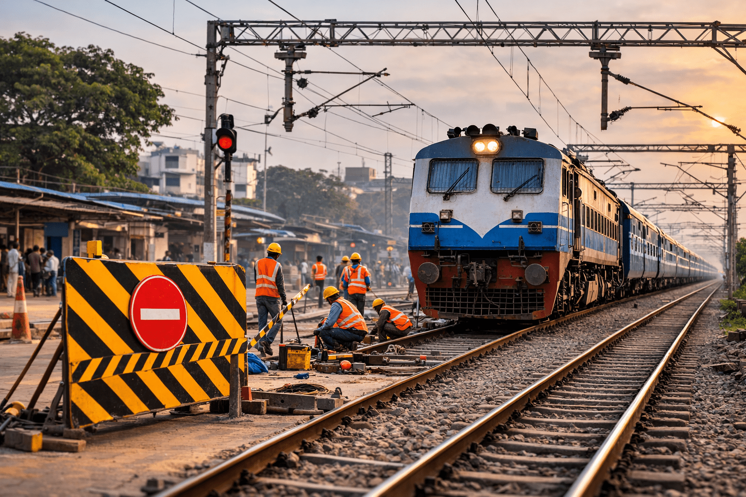 પશ્ચિમ રેલવેના મુંબઈ સેન્ટ્રલ ડિવિઝન દ્વારા નવસારી અને મરોલી વચ્ચે RH ગાર્ડ ડી-લૉન્ચિંગની કામગીરી માટે મેગા બ્લોક જાહેર કરવામાં આવ્યો છે. આ કામગીરીને કારણે અમદાવાદ-મુંબઈ મેઈન લાઇન પર દોડતી કેટલીક ટ્રેનોના સમયમાં ફેરફાર કરવામાં આવ્યા છે અને ટ્રેન વ્યવહાર પર અસર પડશે. રેલવે મુજબ, કામગીરી બે તબક્કામાં હાથ ધરાશે. આવતીકાલે 9 માર્ચે સવારે 10:00 વાગ્યાથી બપોરે 2:00 વાગ્યા સુધી ડાઉન મેઈન લાઇન પર બ્લોક રહેશે, જ્યારે 10 માર્ચે બપોરે 12:00 વાગ્યાથી 3:00 વાગ્યા સુધી અપ અને ડાઉન બંને લાઇન પર કામગીરી થશે. આ કારણે કેટલીક ટ્રેનો રી-શેડ્યૂલ કરવામાં આવી છે. ટ્રેન નંબર 19016 પોરબંદર–દાદર એક્સપ્રેસ 9 માર્ચે પોરબંદરથી લગભગ 1 કલાક 10 મિનિટ મોડે રવાના થશે. ટ્રેન નંબર 20968 પોરબંદર–સિકંદરાબાદ એક્સપ્રેસ 10 માર્ચે પોરબંદરથી 1 કલાક 10 મિનિટ મોડેથી ઉપડશે.