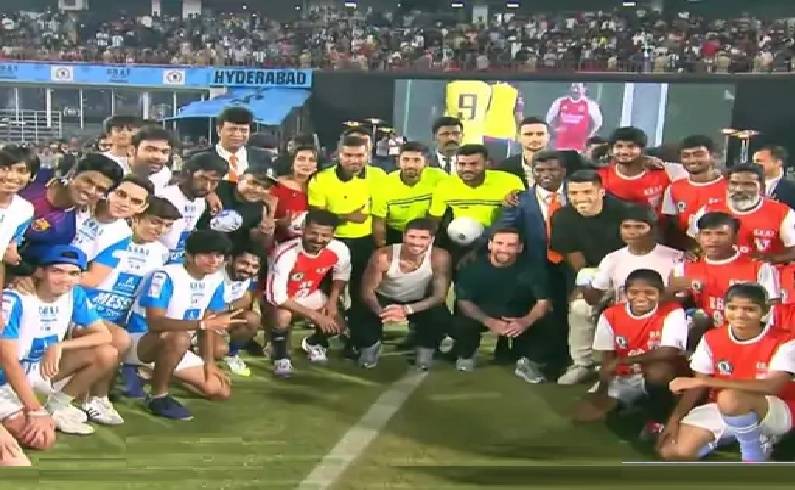 દિગ્ગજ ફૂટબોલર લિયોનેલ મેસ્સી ભારતના ત્રણ દિવસના પ્રવાસ પર છે. GOAT ઇન્ડિયા ટૂરના ભાગ રૂપે તે ત્રણ દિવસ માટે ભારતમાં છે. કોલકાતા પછી તે હવે હૈદરાબાદમાં છે. અહીં તેમણે ઉપ્પલ સ્ટેડિયમમાં રેવંત રેડ્ડી-9 અને મેસ્સી ઓલસ્ટાર્સ વચ્ચેની મૈત્રીપૂર્ણ મેચના પેનલ્ટી શૂટઆઉટમાં ભાગ લીધો. મેદાનમાં પ્રવેશતાની સાથે જ તેમણે ગોલ કર્યો હતો. એક મ્યુઝિકલ નાઇટ અને ત્યારબાદ લેસર શો યોજાયો હતો. કોંગ્રેસ નેતા રાહુલ ગાંધી પણ હાજર હતા. બંને મેસ્સીને તાજ ફલકનુમા પેલેસમાં મળ્યા હતા.