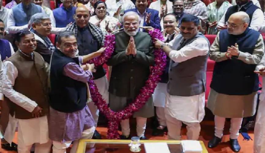 મંગળવારે સંસદ પુસ્તકાલય ભવનમાં રાષ્ટ્રીય લોકશાહી જોડાણ (NDA) સંસદીય પક્ષની બેઠક યોજાઈ હતી. બિહાર વિધાનસભા ચૂંટણીમાં NDAની જીત બદલ વડા પ્રધાનને માળા પહેરાવીને સન્માનિત કરવામાં આવ્યા હતા. પીએમએ બેઠકમાં કહ્યું કે હું બિનજરૂરી કાગળકામ અને 30-40 પાનાના ફોર્મની સંસ્કૃતિનો અંત લાવવા માંગુ છું. આપણે નાગરિકોના ઘરઆંગણે સેવાઓ પૂરી પાડવી જોઈએ, વારંવાર ડેટા સબમિશનની જરૂરિયાતને દૂર કરવી જોઈએ.