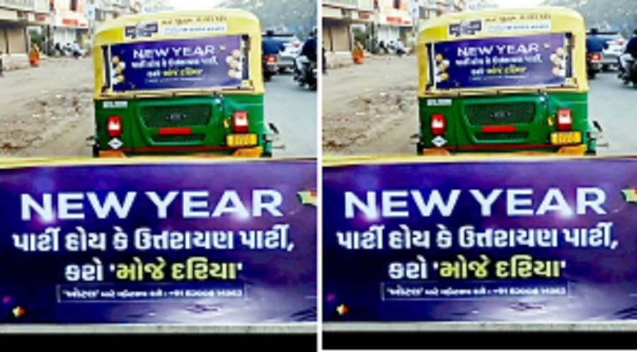 રિક્ષાઓની પાછળ લાગેલા બેનરમાં ન્યુ યર પાર્ટી હોય કે ઉત્તરાયણ પાર્ટી કરો મોજે દરિયાના સ્લોગન સાથે નીચે ભોટલ માટે વોટ્સઅપ નંબર પર સંપર્ક કરવા માટે જણાવાયું છે. આ પ્રકારના બેનરોને પગલે વરાછા સહિતનાં વિસ્તારોમાં ભારે ચર્ચાનો દૌર શરૂ થવા પામ્યો છે.