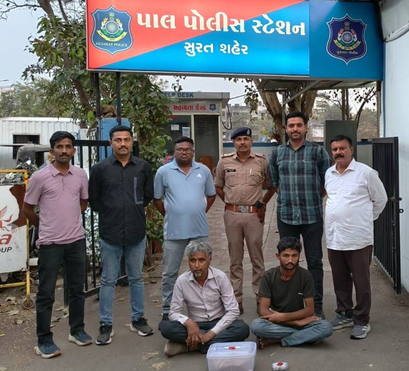 સુરત શહેરમાં નશા સામે ઝીરો ટોલરન્સનો સંદેશ,સુરત શહેરમાં નશાખોરી સામે પાલ પોલીસ સ્ટેશન દ્વારા એક મહત્વપૂર્ણ કામગીરી હાથ ધરવામાં આવી છે.NDPS એક્ટ હેઠળ કાર્યવાહી કરતાં પાલ પોલીસે પ્રતિબંધિત પદાર્થ સાથે બે પેડલરોને ઝડપી પાડ્યા છે.