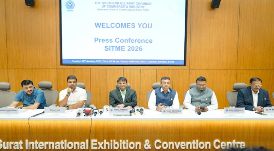 ધી સધર્ન ગુજરાત ચેમ્બર ઓફ કોમર્સ એન્ડ ઈન્ડસ્ટ્રી અને સુરત એમ્બ્રોઇડરી એસોસિએશનના સંયુકત ઉપક્રમે તા. 9થી ૧ર જાન્યુઆરી, 2026 દરમિયાન સવારે 10થી સાંજે 7 કલાક દરમ્યાન સરસાણા સ્થિત સુરત ઈન્ટરનેશનલ એકઝીબીશન એન્ડ કન્વેન્શન સેન્ટર ખાતે ‘સુરત ઇન્ટરનેશનલ ટેક્ષ્ટાઇલ એન્ડ મશીનરી એક્ષ્પો – સીટમે 2026’નું ભવ્ય આયોજન કરવામાં આવ્યું છે.