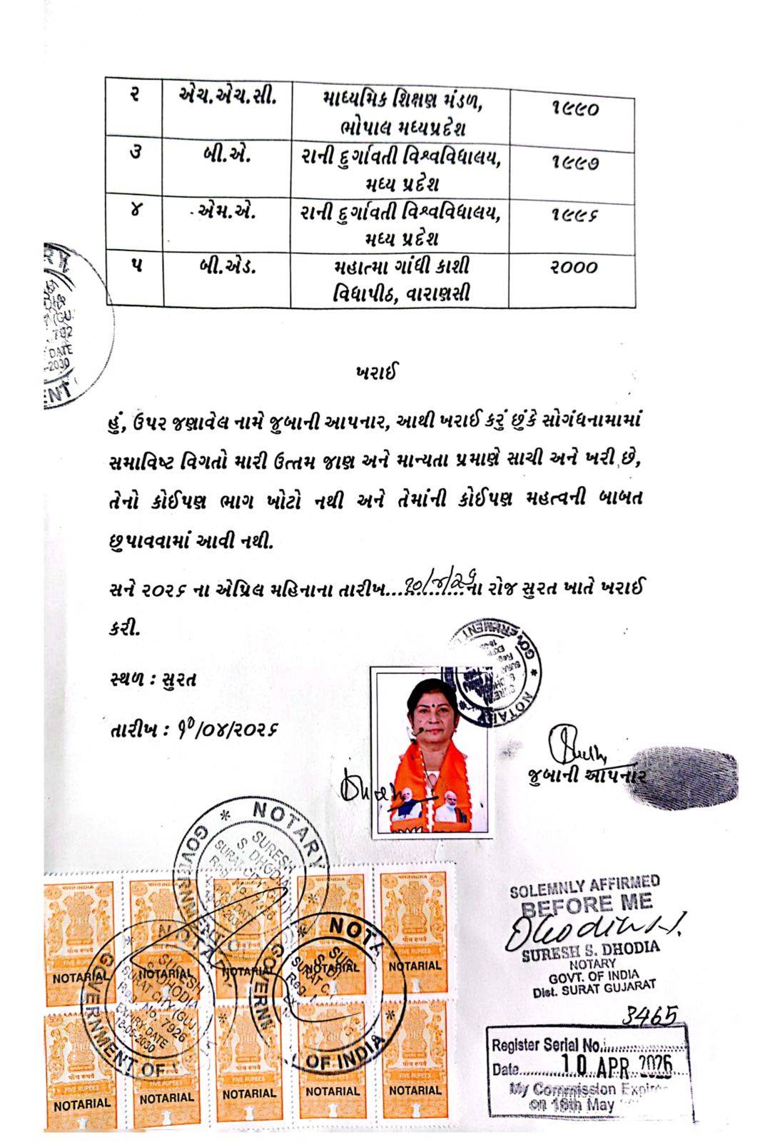 સુરત મહાનગર પાલિકાની ચૂંટણી વચ્ચે વોર્ડ નં. 29ના ભાજપના મહિલા ઉમેદવાર સુધા પાંડેની શૈક્ષણિક લાયકાતને લઈને મોટો વિવાદ ઉભો થયો છે. ઉમેદવારી ફોર્મમાં દર્શાવેલી ડિગ્રીની વિગતો સામે પ્રશ્નો ઉઠતા મામલો સોશિયલ મીડિયામાં ઝડપથી વાયરલ થયો છે અને વિરોધ પક્ષે પણ આ મુદ્દાને ગંભીરતાથી ઉઠાવ્યો છે.
