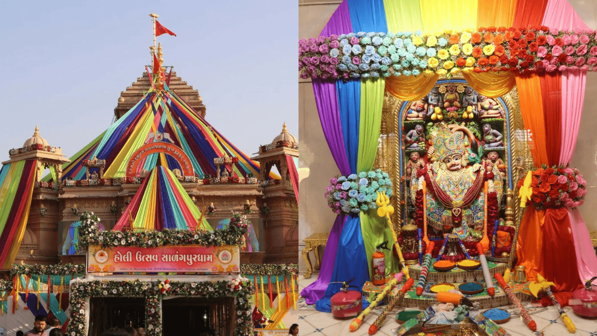 હોળીના ઉમંગને વ્યક્ત કરતાં દાદાને રંગો અને પીચકારીઓ પણ ધારણ કરાવવામાં આવી હતી. મંદિર તથા સમગ્ર પરિસરને રંગીન ફૂલો અને કાપડોથી વિશેષ રીતે સજાવવામાં આવ્યું હતું. આ અનોખા શણગાર અને આરતીના દર્શનનો લાભ હજારો હરિભક્તોએ લઈ આધ્યાત્મિક આનંદની અનુભૂતિ કરી હતી. હોળી-ધુળેટી પર્વ નિમિત્તે તા. આવતીકાલે ૩ માર્ચ ૨૦૨૬ના રોજ પૂર્ણિમાના દિવસે ગુજરાતના સૌથી મોટા રંગોત્સવ તરીકે જાણીતા ભવ્ય ઉત્સવનું આયોજન કરવામાં આવ્યું છે. આ પ્રસંગે દાદાને વિશેષ શણગાર અર્પણ કરી સાત રંગોના ૫૧,૦૦૦ કિલો ઓર્ગેનિક રંગો— ગુલાબી, લાલ, પીળો, નારંગી સહિત હર્ષોલ્લાસભેર દિવ્ય રંગોત્સવ ઉજવાશે. રંગોત્સવની પૂર્વ તૈયારીઓમાં અનેક હરિભક્તો સેવા કાર્યમાં જોડાયા છે. આ ભવ્ય આયોજન ધાર્મિક ઉત્સાહ, ભક્તિભાવ અને ભારતીય સંસ્કૃતિના રંગોથી સરોબર બની ભક્તજનો માટે યાદગાર સાબિત થશે.