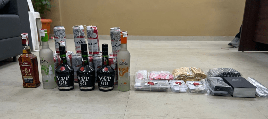 ઉપરાંત 6 વિદેશી દારૂની બોટલ અને 24 બીયરના ટીન સાથે પોલીસે કુલ અંદાજે રૂપિયા 18.01 લાખના મુદ્દામાલ જપ્ત કર્યા હતો. આ કેસમાં અન્ય કેટલાક શંકાસ્પદ વ્યક્તિઓના નામ પણ સામે આવ્યા છે, જેમાં અદાણી શાંતિગ્રામ, અડાલજ તેમજ દિલ્હી સાથે સંકળાયેલા લોકોનો સમાવેશ થાય છે, પરંતુ તેઓને હજુ સુધી ઝડપી શકાયા નથી. આ કેસની આગળની તપાસ બોપલ પોલીસને સોંપવામાં આવી છે.