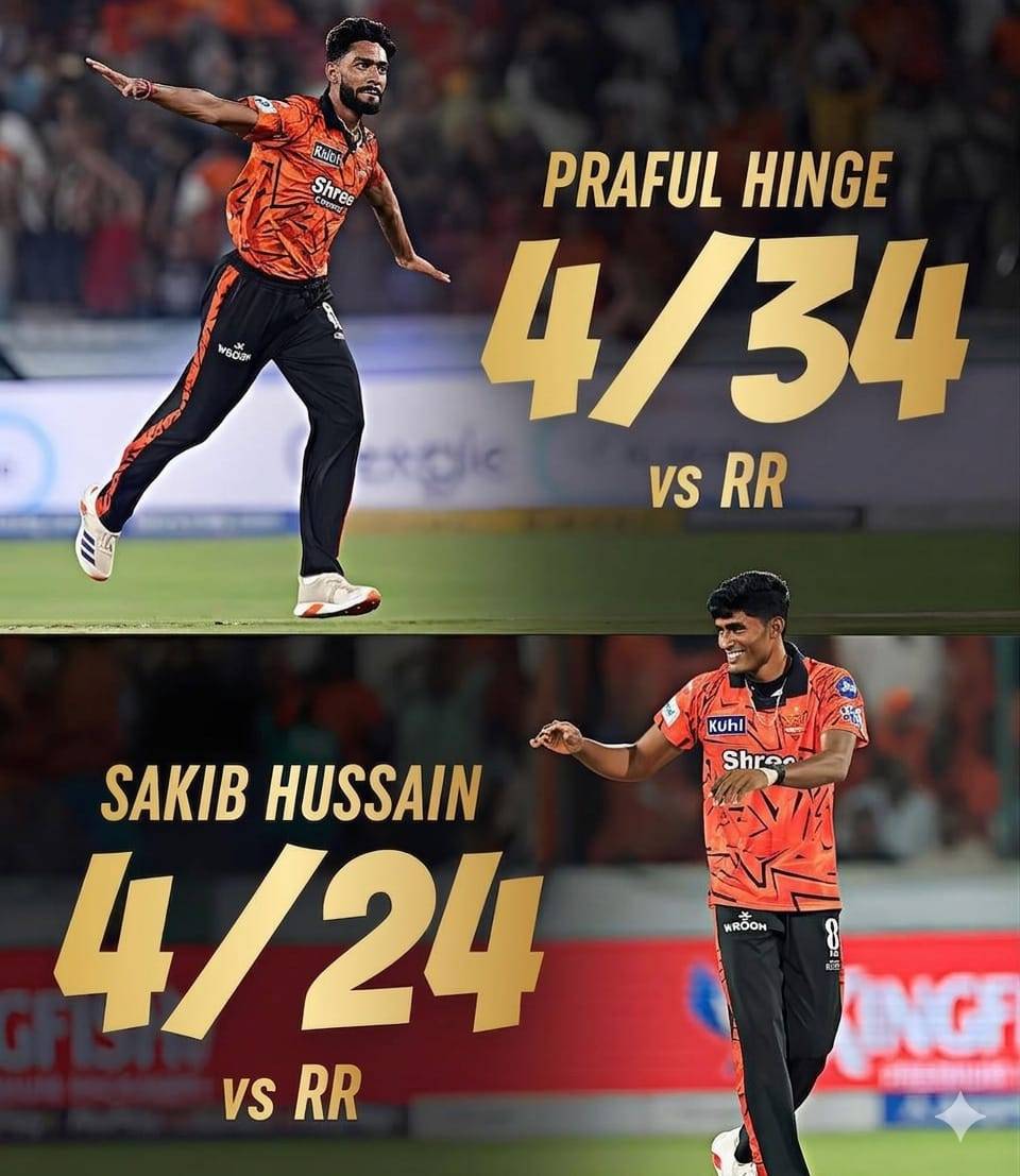 IPL 2026માં સનરાઇઝર્સ હૈદરાબાદ માટે રમતા બે અનકૅપ્ડ ફાસ્ટ બોલર પ્રફુલ હિંગે અને સાકિબ હુસૈનએ પોતાના ડેબ્યૂ મેચમાં જ એવી તબાહી મચાવી કે ક્રિકેટ જગત ચોંકી ગયું. બંનેએ મળીને 8 વિકેટ ઝૂંટવી અને રાજસ્થાન રોયલ્સ સામે ટીમને શાનદાર 57 રનની જીત અપાવી.